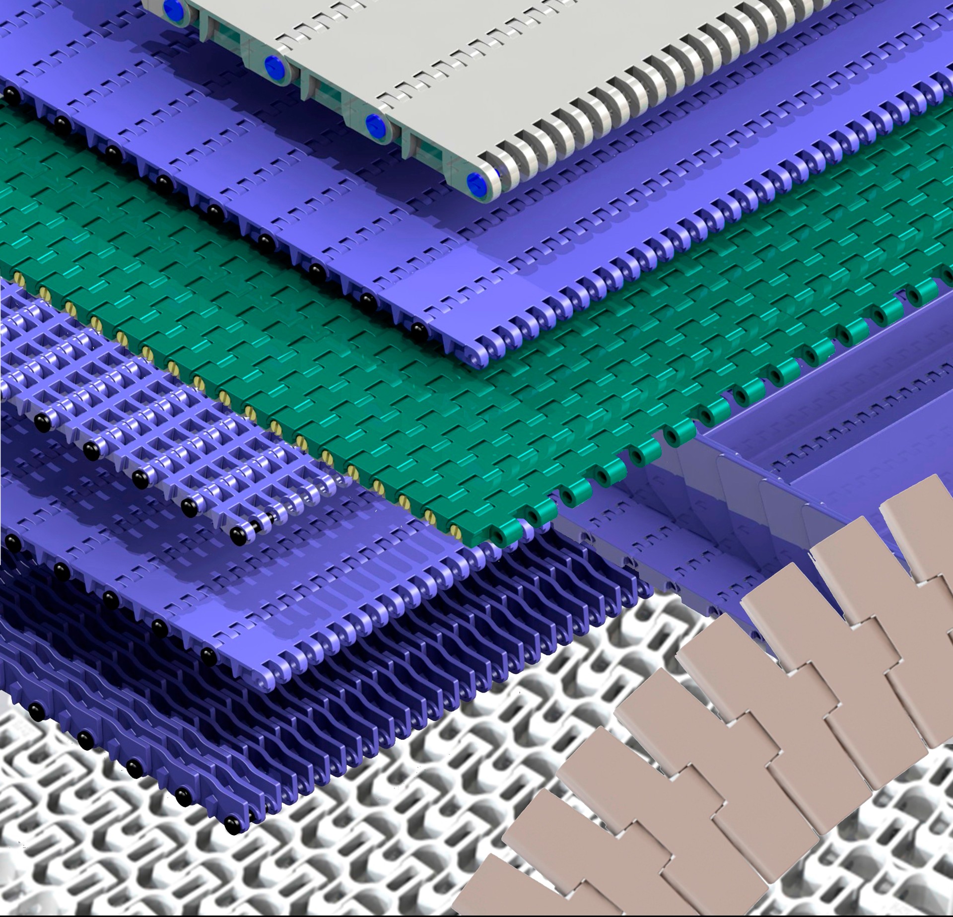 Compostas por módulos plásticos articulados, são indicadas para aplicações retas ou curvas, com variações de largura e passo que permitem grande flexibilidade de projeto. Oferecem manutenção simples, troca rápida de módulos e excelente adaptabilidade a diferentes produtos.
